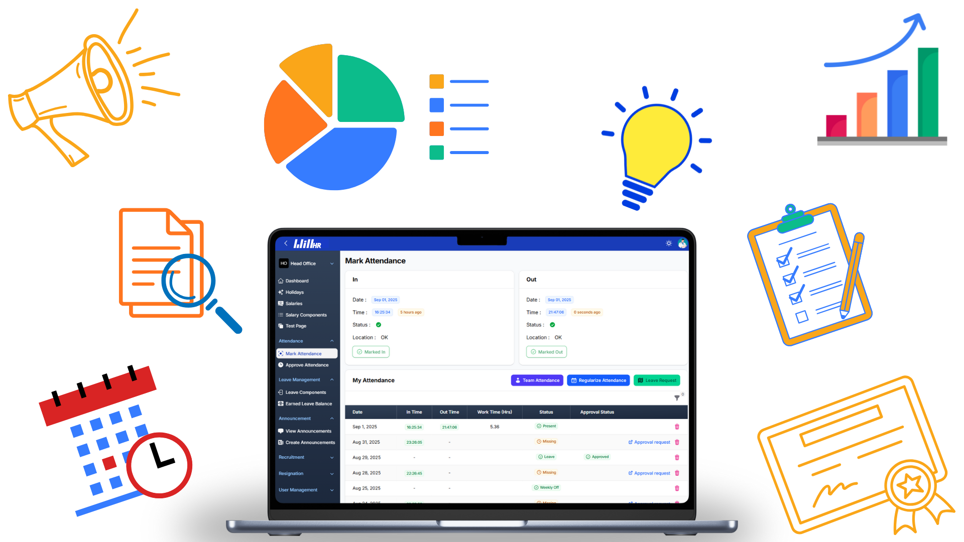 Unify your organization’s people, performance, and productivity with one powerful platform. From attendance to payroll, tasks to performance, and marketing to expenses — manage everything in one place with Willhr